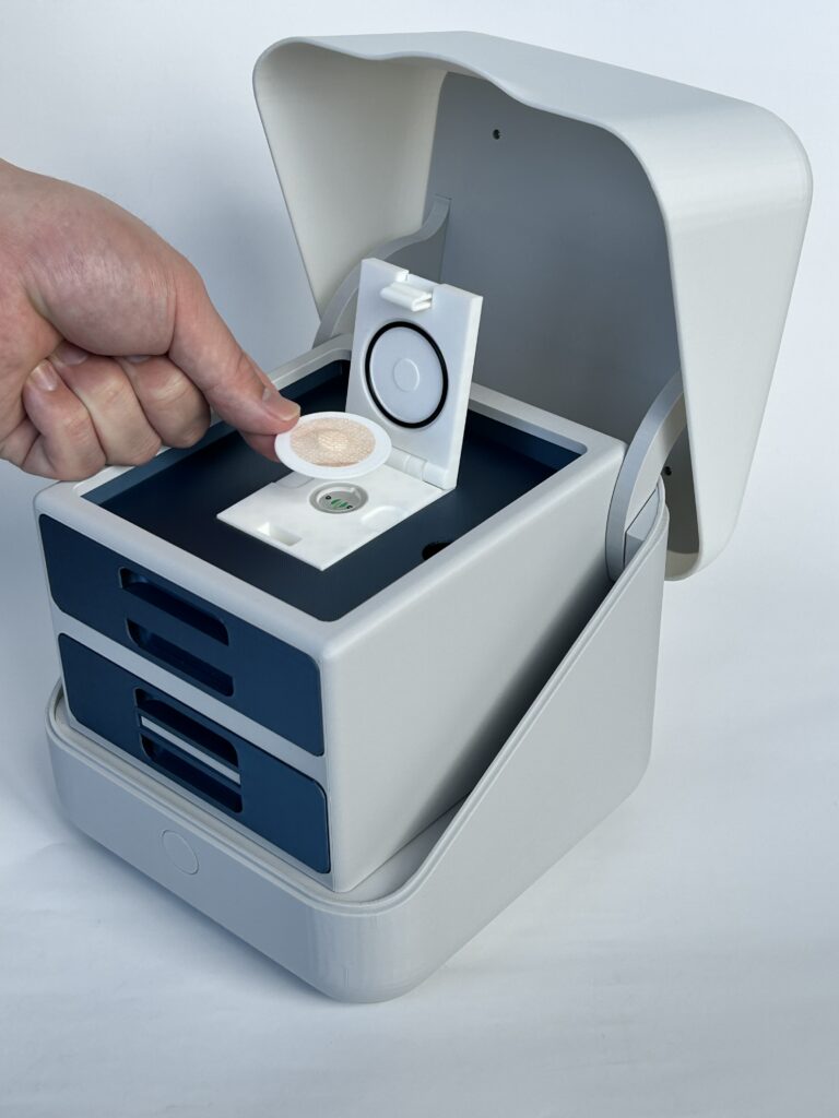 採取した汗をPitagorasにセットしてスタートボタンを押すと、約10分で結果がタブレットに表示されます。肌や筋肉の状態、肌の改善能力、ニキビのリスク、部位ごとの筋肉のつきやすさ、脂肪のつきやすさなど、お客様の内側の細胞レベルの状態が可視化されます。表面的な情報だけでなく、根本的な改善に繋がるデータを提供できるのが私たちの強みです。